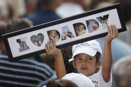 A child participates in ceremonies marking the sixth anniversary of the Sept.11 attacks in New York September 11, 2007. [Reuters]