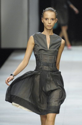 A model presents a creation by Croatian designer Ivana Omazic for Celine as part of her Spring/Summer 2008 ready-to-wear fashion collection in Paris, October 4, 2007. [Agencies]