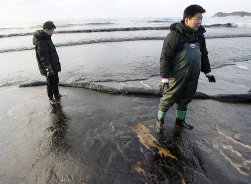 Oil reaches shore in South Korea's largest oil spill