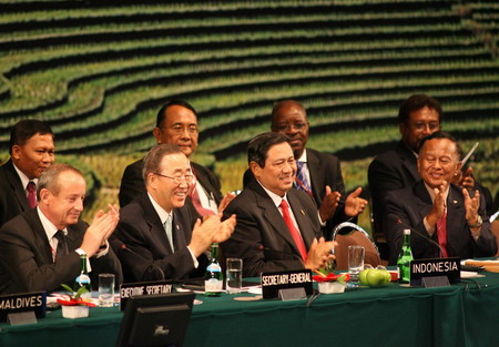 Indonesian President Susilo Bambang Yudhoyono (4th-L) attends the opening of the high-level segment of the UN Climate Change Conference in Nusa Dua, Bali island December 12, 2007. [Agencies]