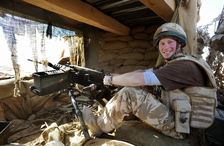 Britain's Prince Harry mans a 50 calibre machine gun on the observation post at JTAC Hill, close to FOB Delhi (forward operating base), in Helmand province, southern Afghanistan January 2, 2008. Prince Harry is being withdrawn from Afghanistan immediately, the Defence Ministry said on February 29, 2008, after news leaked on the Internet that he had been secretly fighting on the front lines for 10 weeks. [Agencies]