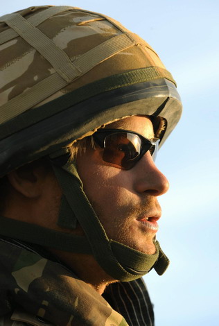 Britain's Prince Harry watches the sunset from his Spartan armoured vehicle in the desert in Helmand province, southern Afghanistan, February 18, 2008. Prince Harry is being withdrawn from Afghanistan immediately, the Defence Ministry said on February 29, 2008, after news leaked on the Internet that he had been secretly fighting on the front lines for 10 weeks. [Agencies]
