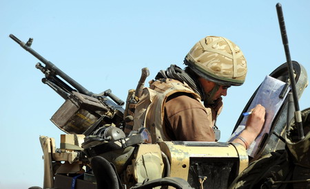 Britain's Prince Harry studies a map while sitting in a Spartan armoured vehicle in the desert in Helmand province, southern Afghanistan, February 18, 2008. Prince Harry is being withdrawn from Afghanistan immediately, the Defence Ministry said on February 29, 2008, after news leaked on the Internet that he had been secretly fighting on the front lines for 10 weeks. [Agencies]