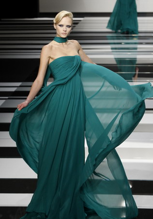 Updated: 2008-03-02 14:09 ![]() A model presents a creation by Lebanese designer Elie Saab as part of his Fall/Winter 2008/09 women's ready-to-wear fashion show in Paris March 1, 2008. [Agencies]