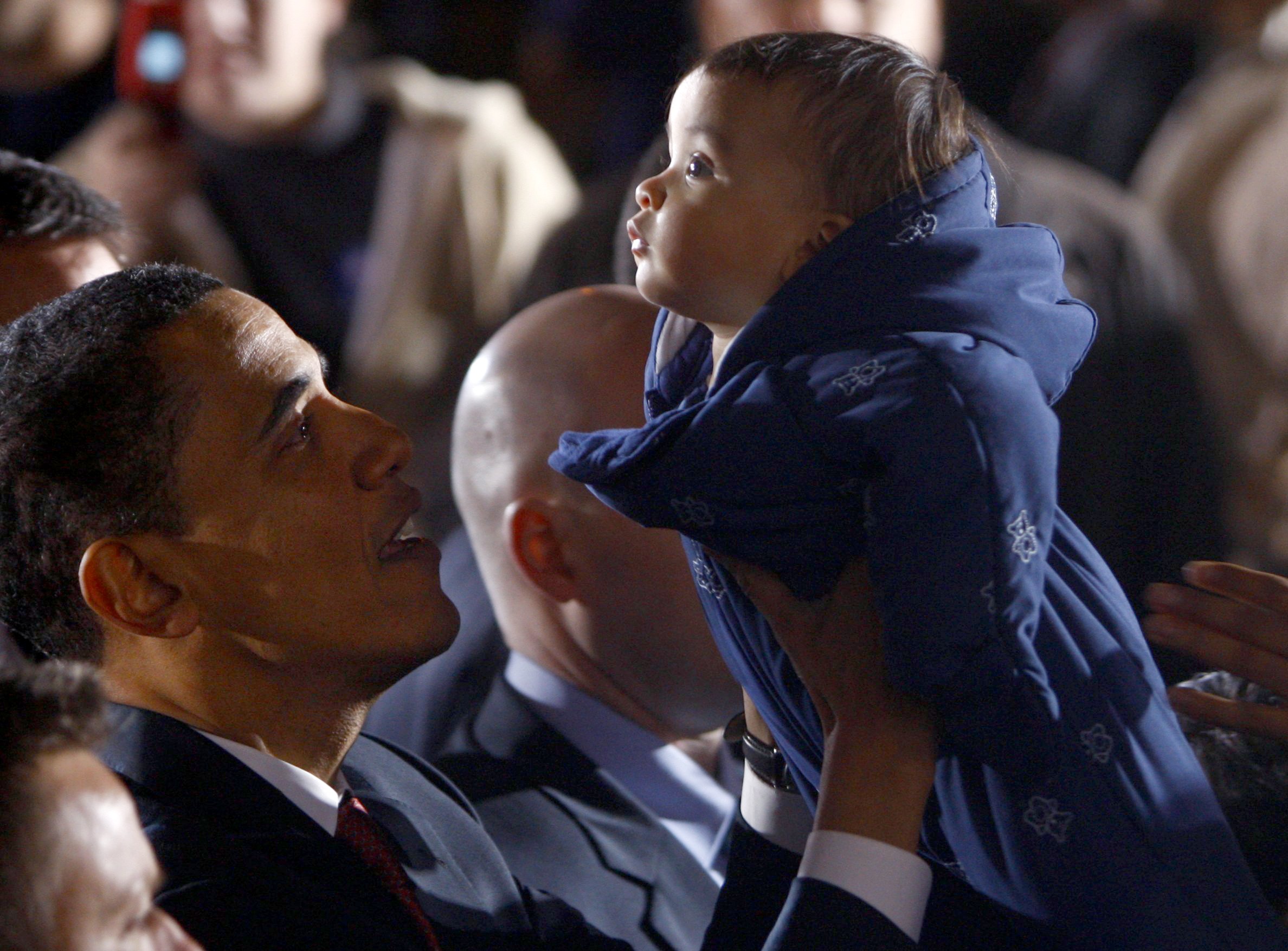 US Democratic presidential candidate Senator Barack Obama (D-IL) holds an infant as supporters crowd around following his remarks at his Ohio and Texas primary election night rally in San Antonio, Texas March 4, 2008. [Agencies] |