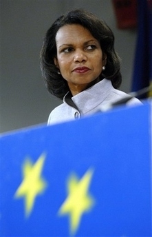 US Secretary of State Condoleezza Rice talks to the media during a joint press conference with European Union Commissioner for External Relations Benita Ferrero-Waldner, not pictured, following their meeting at the EU Commission headquarters in Brussels, March 6, 2008. [Agencies]