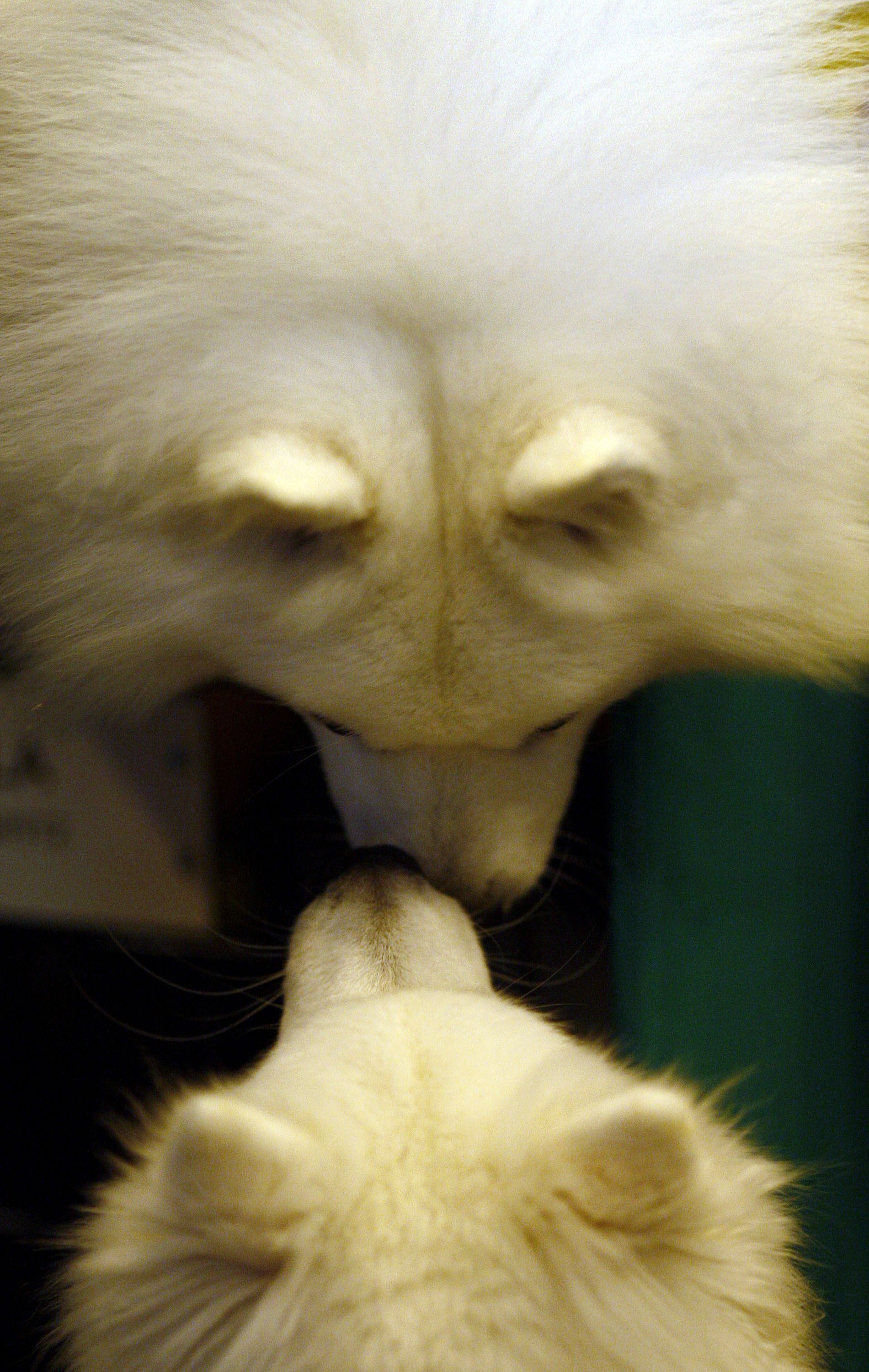 Two Japanese Spitzs play in the stalls before going into the parade ring at the Crufts dog show in Birmingham, central England March 6, 2008. Crufts was founded in 1891 by entrepreneur Charles Cruft and has long been established as one of the world's greatest dog shows. [Agencies]