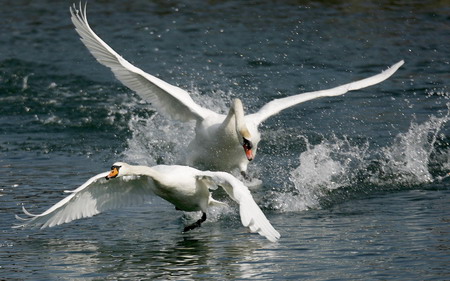 Wild swans are seen in lake Flachsee in Unterlunkhofen, Canton Aargau, Switzerland March 9, 2008. The authorities of Canton Aargau have given permission to hunters to shoot the swans because of overpopulation in the region. [Agencies]