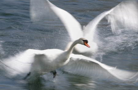 Wild swans are seen in lake Flachsee in Unterlunkhofen, Canton Aargau, Switzerland March 9, 2008. The authorities of Canton Aargau have given permission to hunters to shoot the swans because of overpopulation in the region. [Agencies]