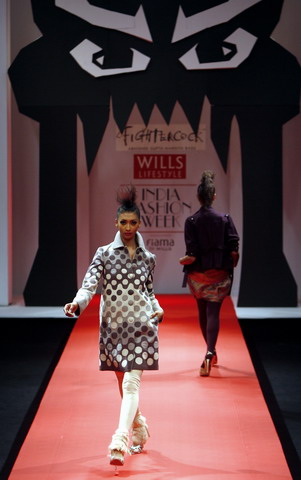 Models present creations from Indian designers Abhishek Gupta and Nandita Basu's Autumn/Winter 2008 collection at the Wills Lifestyle India Fashion Week in New Delhi March 13, 2008. [Agencies]