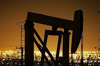 Pumps draw petroleum from oil wells in Signal Hill, California. Oil prices shot higher on Tuesday after the Federal Reserve slashed three-quarters of a point off interest rates, fueling expectations of stronger energy demand from the world's biggest economy. [Agencies]