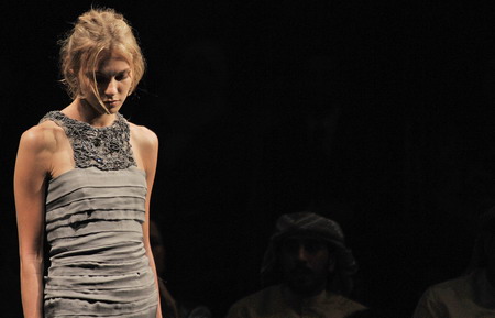A model wears a creation by Gardem during the Fall/Winter 2008/09 Abu Dhabi Fashion Week at Emirates Palace March 18, 2008. [Agencies]