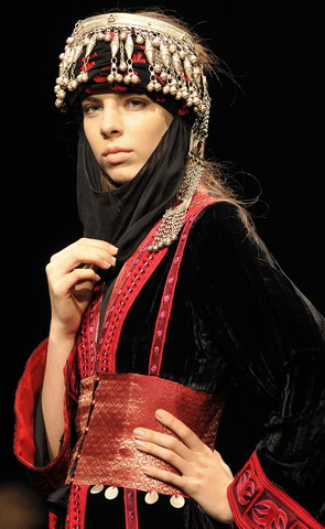 A model presents a creation by Saudi designer Amina Al Jassim during Abu Dhabi Fashion Week at Emirates Palace March 18, 2008. [Agencies]