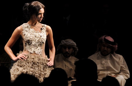 A model wears a creation by Gardem during the Fall/Winter 2008/09 show during Abu Dhabi Fashion Week at Emirates Palace March 18, 2008. [Agencies]