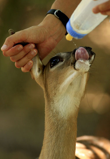 A deer is fed by biologist Carmen Hernandez at the Las Pumas Rescue Shelter in Canas, Guanacaste, 200 km (124 miles) from San Jose, March 19, 2008. The shelter was created 40 years ago, by Swiss Werner Hagnauer and his late wife Lilly Bodmer, when the deforestation levels in Guanacaste were high. Hagnauer received animals that the neighbours brought to save their lives, as well as those the Ministry of Environment confiscates. At the moment the shelter is home to more than 160 animals from 60 different species. [Agencies]