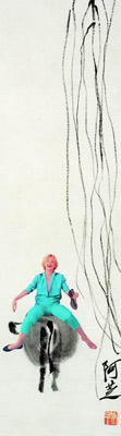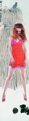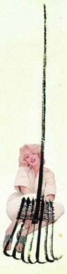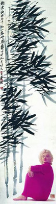 Using the digital collage technique, Zhang thrusts together images of the popular and the scholarly¨Cconcepts that we think of as mutually exclusive. Forcing the viewer to reexamine preconceived notions of Western and Eastern icons, Zhang crosses barriers of time, space and culture to create a light and witty, yet thoughtful effect. Using oil on canvas, the artist distances his personal approach from the watercolor world of Qi and from the photography and film that made Monroe famous.