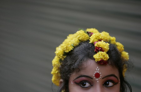 A girl participates in the celebrations for the spring season during Holi, the festival of colours, in the eastern Indian city of Kolkata March 20, 2008. The tradition of Holi heralds the beginning of spring and is celebrated by Hindus throughout the country. [Agencies]