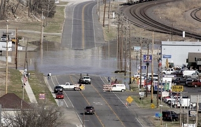 A portion of Osage Street in Pacific, Mo. is covered with floodwaters from the Meramec River, Friday, March 21, 2008. Some of the residents of the town, west of St. Louis, have been forced from their homes. [Agencies]