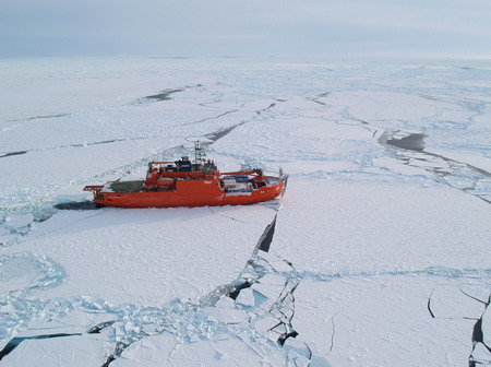 Australian research ship Aurora Australis travels near the Antarctica in this undated handout picture. Scientists aboard the Aurora Australis set off from the southern Australian city Hobart, in Tasmania on March 22, 2008, on a voyage to Antarctica on Saturday to see if the icesheets at the edge of the vast continent are melting faster and whether the Southern Ocean is soaking up less climate-warming carbon dioxide. [Agencies]