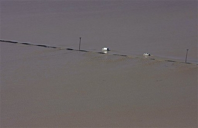 Drivers brave a flooded county road Thursday, March 20, 2008 near Cape Girardeau, Missouri With more than a dozen people killed by floodwaters and rivers still rising, weary Midwesterners on Thursday weighed not just the prospect of a sodden cleanup but the likelihood that their communities could be inundated again. [Agencies]
