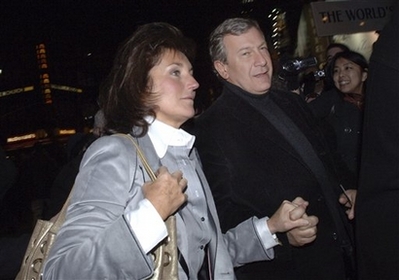 Cecilia Ciganer-Albeniz, left, ex-wife of French President Nicholas Sarkozy, arrives with Richard Attias for the evening performance of the play 'Mama Mia' at The Winter Garden Theater in New York, on Saturday, March 22. 2008. Ciganer-Albeniz is reported to be planning to marry Attias this weekend. [Agencies]