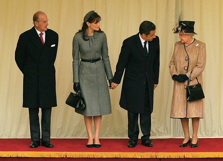 French president Nicolas Sarkozy (2nd R),and France's first lady Carla Bruni (2nd L), speak with Britain's Queen Elizabeth (R) as Prince Philip watches at Windsor Castle in Windsor, southern England March 26, 2008. French President Sarkozy arrived in London on Wednesday on a state visit he hopes will improve cooperation with Britain on illegal immigration, defence and the economy. [Agencies]