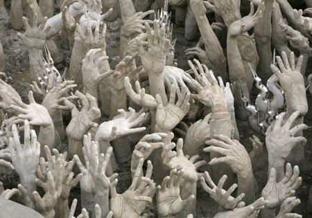 A sculpture of the hall of a temple of Wat Rong Khun (Rong Khun temple) in Thailand's Chiang Rai province, north of Bangkok, is seen March 30, 2008. [Agencies]