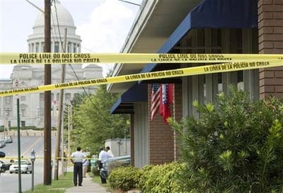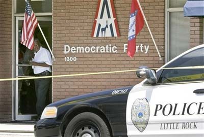 After the midday shooting, the suspect was chased into Grant County, south of the capital, and apprehended after being shot. Police fired at the man but it wasn't known whether he also suffered self-inflicted injuries. Moments before the Democratic headquarters shooting, a man with a gun threatened the building manager of the Arkansas State Baptist Convention headquarters seven blocks east. It wasn't known if the incidents were related. Dan Jordan, the denomination's business manager, said the building manager asked the man what was wrong and that he said "I lost my job." The state Capitol was locked down for about an hour until police got word the shooter had been captured, said Arkansas State Capitol police Sgt. Charlie Brice. Karen Ray, executive director of the Republican Party of Arkansas, sent her workers home early "out of an abundance of caution." "Our hearts go out to everyone at the Democratic headquarters. What a tragedy," Ray said. "This is just a very upsetting, troubling and scary thing for our staff as well." An impromptu vigil at University Hospital drew Gov. Mike Beebe and a number of state legislators who had worked with Gwatney. House Majority Leader Steve Harrelson was at the state Capitol for a news conference on crime and that he didn't know of anyone who would want to harm Gwatney. "You never think of something like this happening here in Arkansas," Harrelson said.