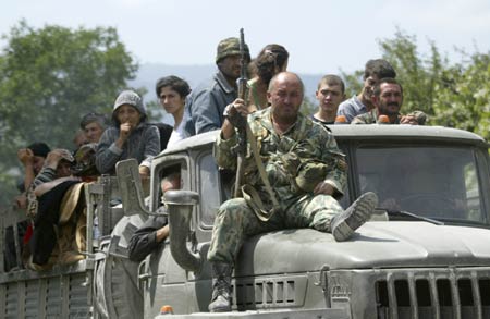 A truck full of refugees leaves South Ossetian regional centre in Tskhinvali August 11, 2008. French President Nicolas Sarkozy flies to Russia and Georgia on Tuesday, hoping to use his good relations with Moscow and his country's presidency of the European Union to broker a truce. Picture taken August 11, 2008. [Agencies]