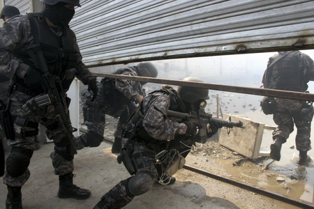 Policemen enter La Mesa jail during a riot in Tijuana September 17, 2008. Police said they have quelled a second riot in three days at the state jail in Tijuana. [Agencies] |
