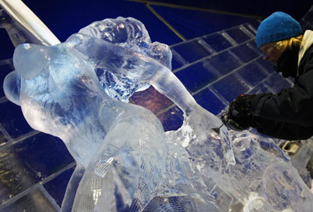 An artist sculpts ice at the Snow and Ice Sculpture Festival in Bruges November 18, 2008. The festival opens on November 21 and ends on January 11, 2009. [Agencies]
