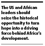Updated: 2008-11-19 07:47 After the conclusion of the Beijing Olympic Games in late August, I arrived at the Nordic African Institute in Uppsala, Sweden for a three-month stay as a guest researcher. While there I felt the impact of the US presidential election on Africa and northern Europe. Before Election Day the prevailing view of people there can be summed up in the disappointment with the Bush administration and the wish for Barack Obama to win whenever they were asked of their opinion about American politics and primary election. On Nov 4, Tolu, a fellow researcher from Nigeria with whom I shared the office, stayed up all night (because of the time difference it was night time when Americans cast their votes and waited for the result) watching the BBC coverage of the US presidential election. He kept tabs of the ballot counts in each US state as they were announced one after another with no less attention than he would put on the presidential election of his own country. The excitement, aroused by the news that Obama had been elected the 44th president of the United States, in Africa and especially in his father's birth country Kenya to a certain extent probably surpassed that in the US. People went on the streets cheering and dancing; newspapers and websites were overflowing with articles singing his praises, while African heads of state lost no time to congratulate him; and the Kenyan government took one step further by declaring Nov 4 a public holiday. Some African commentators compared the tremendous political passion and hope in Africa triggered by Obama's election as the next US president to the impact on the continent of the moment Nelson Mandela, former president of South Africa, walked out of prison on Feb 11, 1990. The difference between the two historic events is that Mandela's release signified decades of support for the South African people's fight for racial equality by other African nations was approaching the decisive victory, South Africa's apartheid would soon be buried and the country, the most powerful in Africa, would soon end its hostility toward other African nations and assume the role of spearheading the continent's advance toward rejuvenation and self-empowerment. As for Barack Obama, seen by Africans as one of their own, his victory in the US presidential election showed the whole world an ordinary African-American with no political background to lean on had finally reached the country's power summit; Africans once again felt so proud of their skin color, and a light of hope had been lit for Africa to forge a true partnership with America the superpower as well as to end poverty with development. Indeed there is no doubt that "pride" and "hope" are key words the two historic events share. Having experienced centuries of colonial rule and the humiliation of slave trade and the difficulties and setbacks along the path of development in the past 50 years or so, all Africans are now determined to achieve "the rise of Africa" and "building strength in unity", which is also part of the African Union's guiding principle. Therefore it shouldn't come as a surprise that Africa takes Obama's election campaign rallying cry of "change" and his personal experience as an African-American brought up in a single-parent family who has made it step by step all the way to the White House to heart, because that is the way Africans want to follow, too. That Africa is taking off in the 21st century is no less believable than Obama's statement after winning the US presidency: "Everything is possible." Little wonder some Africans see Obama's victory as "the triumph of all those nations in the world that were once oppressed and marginalized". South African President Kgalema Motlanthe also said that Obama's win has brought hope to American people's desire for change but also to all Africans living in Africa and elsewhere in the world. No doubt Africa has been disappointed by the Bush administration's African policy in the past eight years and is hoping wholeheartedly for the next US government, led by "Africa's son" Obama, to turn a new leaf in US-African ties. As Kenyan Prime Minister Raila Odinga said clearly, his country hopes the US government will adopt a more pro-Africa policy and increase US investment in and trade with Africa and Kenya will do its best to cooperate with the US in fighting terrorism in the Horn of Africa. Even earlier, African Union Commission Chairman Jean Ping expressed at a meeting in the US the hope that the next US government will (1) expand and strengthen its contact with Africa; (2) increase high-level communication and dialog between the US and Africa; (3) reinforce the ties between various institutions and government departments of the two sides; (4) continue to play the lead role in gathering international support for Africa's development; and (5) provide concrete and explicit support for Africa's current initiatives and projects. Some Africans have called on via their blogs all African leaders to set off immediately for Washington and start lobbying, to convince Obama he needs to make Africa a priority on his foreign affairs agenda before he is officially sworn in as the new US president in January. It is even more admirable that, while praising, cheering and hoping, the African media has also pointed out that Obama, despite his African lineage, is America's president, whose top priority naturally will be US interests. What Africa should do is not "beg" for US "help" but seize the historic opportunity to forge true partnership with the United States. Obama is not God. And ultimately it is up to Africans themselves to solve Africa's problems. It would be a colossal mistake if Africa saw the US as its "savior", a fact already written down in history. Some African scholars have shown considerable insight in their analyses of the US election and its significance to Africa from such angles as racial harmony, going beyond tribal politics and ways to guid