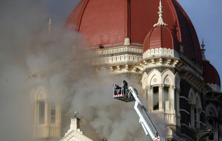 Rescue efforts continued throughout the day amid sporadic gunfire, with some hostages escaping and others rescued by police. Several bodies were carried out of the five-star Taj Mahal Palace and Tower hotel, one of 10 sites seized by gunmen on Wednesday night. Flames burst from the hotel's top floors and dome shortly after the attack began Wednesday night, and erupted again after commandoes raided the building Thursday. After dusk Thursday, the soldiers ushered several dozen captives out of the Oberoi hotel, another Mumbai landmark. One of the freed hostages who did not give his name told reporters he had seen many bodies inside the hotel. He refused to give more details, saying he had promised police not to discuss the rescue while it was ongoing. The Maharashtra state home ministry said 45 captives had been freed from the Oberoi and 35 were still trapped inside. Police said they were going slowly to protect the captives. "The safety of the people trapped is very important," said A. N. Roy, a senior police officer. "It will take time but it will be completed successfully," he said. Among the dead were at least one Australian, a Japanese and a British national, said Pradeep Indulkar, a senior government official of Maharashtra state, whose capital is Mumbai. An Italian and a German were also killed, according to their foreign ministries. |