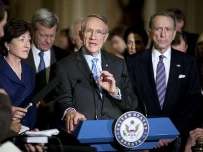 The emerging legislation includes help for victims of the recession in the form of expanded unemployment benefits, food stamps, health coverage and more, as well as billions for states that face the prospect of making deep cuts in school aid and other programs. Another provision will mean a one-time payment of $250 for millions of beneficiaries who receive Social Security, Supplemental Security Income and veterans pensions and disability, according to officials. The measure also preserves Obama's signature tax cut -- a break for millions of lower and middle income taxpayers. Wage-earners who don't make enough to pay income taxes would get a reduction in the Social Security and Medicare taxes they pay. The president also won money for two other administration priorities -- information technology in health care, and "green jobs" to make buildings more energy-efficient and reduce the nation's reliance on foreign oil. The bill "will be the beginning of the turnaround for the American economy," predicted Sen. Joseph Lieberman, the independent from Connecticut. Republicans couldn't have disagreed more. "It appears that Democrats have made a bad bill worse by reducing the tax relief for working families in order to pay for more wasteful government spending," said Rep. John Boehner of Ohio. The events capped a frenzied 24-plus hours that began at mid-day Tuesday when the Senate approved its original version of the bill on a party-line vote of 61-37. Reid, Pelosi and White House Chief of Staff Rahm Emanuel plunged into a series of meetings designed to produce agreement in time for Obama to sign the bill by mid-month. Pelosi was conspicuously absent from Wednesday's news conference in which members of the Senate announced the agreement. It was not clear whether she stayed away out of unhappiness or a scheduling conflict, but moments later, Reid arrived in her office, and the two talked by phone with Emanuel, according to officials who spoke on condition of anonymity. Officials had said previously that one of the final issues to be settled was money for school modernization, a priority for Pelosi as well as Obama and one on which they differed with Collins and other moderates whose votes will be essential for final Senate approval. There also was last-minute disagreement about a House proposal that could direct education funds to schools even if a state's governor didn't approve, they said. Stocks moved higher in the moments after Reid stepped to the microphone just outside the Senate chamber. The Dow Jones industrials, which plunged 382 points on Tuesday, rose 51 points for the day. Obama has been campaigning energetically for the legislation in recent days, saying it was essential to avoid turning what is already the worst economic crisis in a generation into a catastrophe. As if to underscore the urgency, he said a few hours before the agreement was announced that machinery giant Caterpillar Inc. plans to rescind some of the 22,000 layoffs the firm recently announced -- once the stimulus is signed into law. Scaling back the bill to levels lower than either the $838 billion Senate measure or the original $820 billion House-passed measure caused grumbles among liberal Democrats, who described the cutbacks as a concession to the moderates, particularly Sen. Arlen Specter, R-Pa., who are under pressure from conservative Republicans to hold down spending. Working to accommodate the new, lower overall limit of the bill, negotiators effectively wiped out a Senate-passed provision for a new $15,000 tax credit to defray the cost of buying a home, these officials said. The agreement would allow taxpayers to deduct the sales tax paid on new car purchases, but not the interest on loans for the same vehicles. School construction was a problem apart from all others. Sen. Tom Harkin, D-Iowa, told reporters that $6 billion would be set aside, and officials said it could be spent only on repair and modernization work, a limitation designed to appease the moderates. But officials said House Democrats were holding out for as much as $9 billion. With numerous demands for the funds in the bill, lawmakers worked to satisfy competing demands. A Senate-passed provision to give $10 billion to the National Institutes of Health for research -- a favorite of both Harkin and Specter, appeared likely to survive. The officials who described the negotiations did so on condition of anonymity, saying they were not authorized to disclose the details of the closed-door negotiations. |