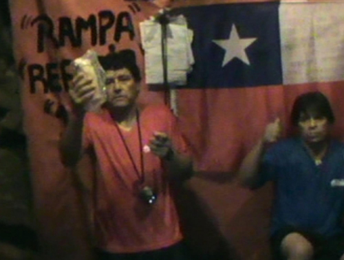 A frame grab shows trapped miners holding food during celebrations of the bicentenary of Chile's independence in their refuge deep underground inside a copper and gold mine near Copiapo September 18, 2010. [Photo/Agencies]