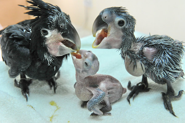 ![]() Three Black Palm Cockatoo siblings are displayed to the media at the Jurong Bird Park in Singapore on Dec 20, 2010. Black Palm Cockatoos are being bred as part of the park's ongoing birdlife conservation program. [Photo/Agencies] |