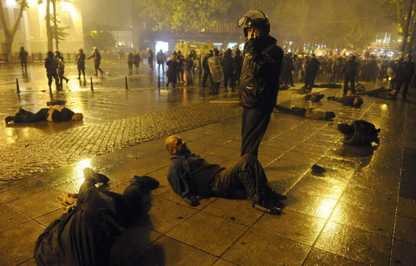 ![]() Police detain protesters during clashes in Tbilisi May 26, 2011. [Photo/Agencies]