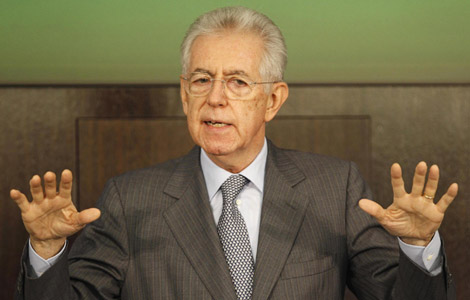 Italian Prime Minister Mario Monti speaks during his year-end news conference in Rome December 29, 2011. [Photo/Agencies] |