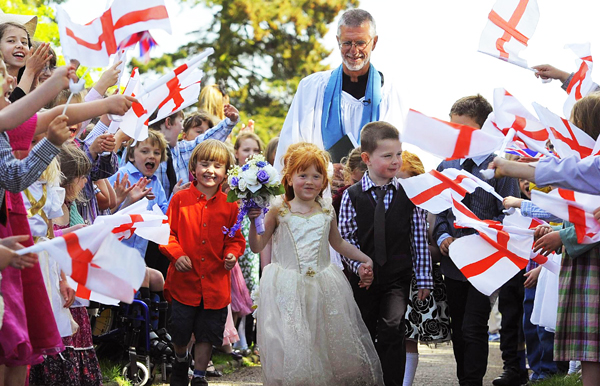 Pupils of Kirby Hill school take part in a mock wedding ceremony at the church in Kirby Hill, northern England.