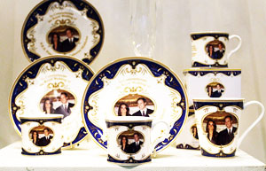 Royal wedding commemorative china showing Britain's Prince William and Kate Middleton, are displayed in a shop window in central Sydney April 27, 2011.