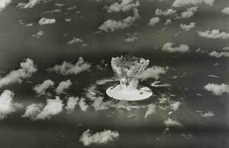 | A mushroom cloud rises with ships below during Operation Crossroads nuclear weapons test on Bikini Atoll, Marshall Islands in this 1946 handout provided by the US Library of Congress. The United States said on April 25, 2014, it was examining lawsuits filed by the Marshall Islands against it and eight other nuclear-armed countries that accuse them of failing in their obligation to negotiate nuclear disarmament. [Photo/Agencies] |
