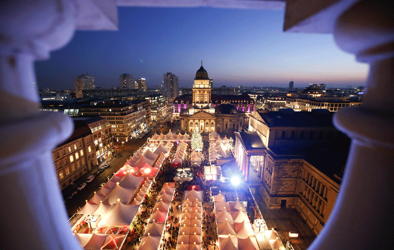 A general view shows the illuminated Christmas market at Gendarmenmarkt square in Berlin, December 9, 2014. [Photo/Agencies]