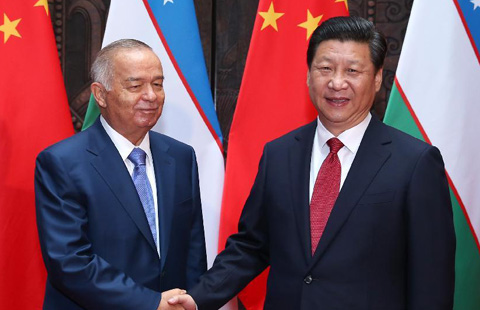 Chinese President Xi Jinping and his Uzbek counterpart, Islam Karimov, pledged here on Tuesday to push forward bilateral relations.