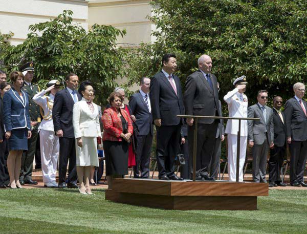 Chinese President Xi Jinping attends a welcome ceremony held by Australian Governor-General Peter Cosgrove in Canberra, Nov 17, 2014.[Photo/Xinhua] |