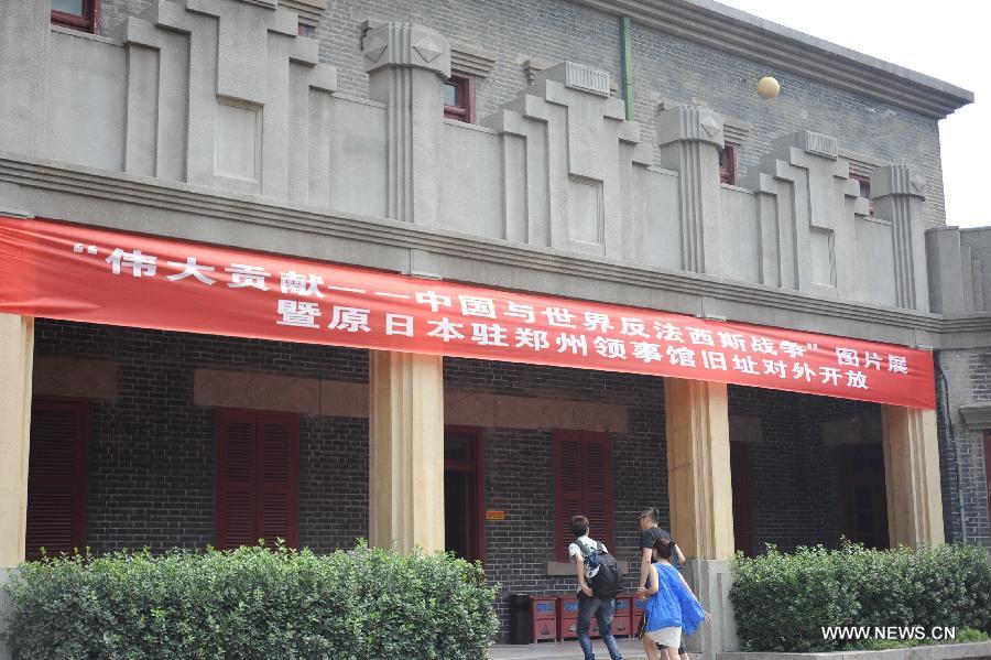 Visitors enter the building of a former Japanese consular in China where the anti-fascist war exhibition is held. [Photo/Xinhua]
