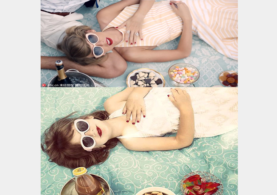 The six-year-old Lilly Neitzert, a hardcore fan of US pop star Taylor Swift from Southern California, recreates one of Taylors most famous looks and shares them with followers online on June 20, 2016, thanks to the help of her mum Sara. [Photo/IC]