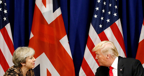 US President Donald Trump meets with British Prime Minister Theresa May during the UN General Assembly in New York, US, September 20, 2017. [Photo/Agencies] |