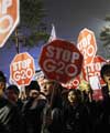 Thousands of people chanted anti-globalization slogans in South Korea's capital Sunday to protest this week's Group of 20 summit. Part of the crowd attempted to march down nearby streets but were stopped by riot police, who fired pepper spray.