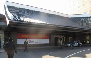 Banners are hanged outside the hotel to welcome the arrival of the Chinese President Hu Jintao, who will exchange views with other G20 leaders on global economic recovery between Nov 11 and 12.