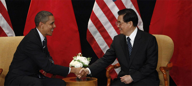 Chinese President Hu Jintao and his US counterpart Barack Obama met in Seoul Thursday to exchange views on Sino-US relations and other major world and regional issues of common concern.